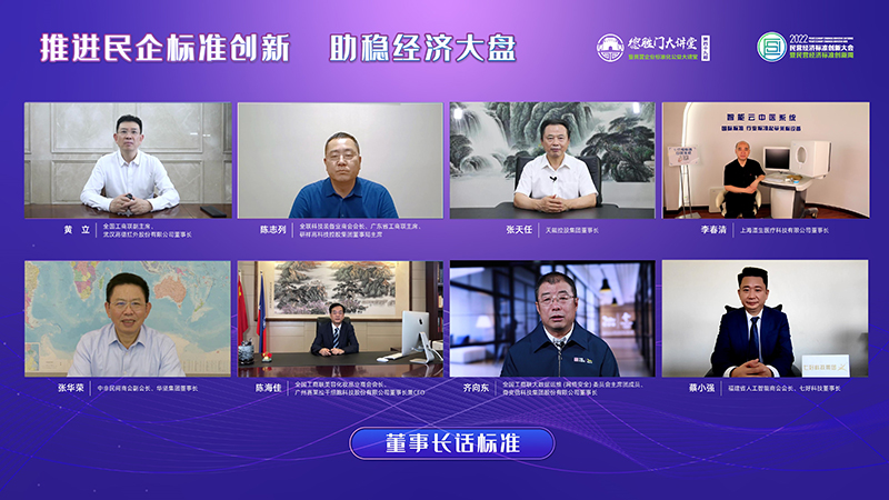 在“董事长话标准”环节中,全国工商联副主席、武汉高德红外股份有限公司董事长黄立,从对标达标、用标提标、制标创标几方面分享了高德红外通过标准化实践提升公司经营管理水平的实践经验。全联科技装备业商会会长、广东省工商联主席、研祥高科技控股集团董事局主席陈志列,从企业管理标准化、技术创新标准化、成果转化标准化三方面讲述了研祥在标准化建设方面的心得体会。天能控股集团董事长张天任,分别从建立标准化工作推进机制、创建高附加值核心技术产品、探索绿色低碳智能制造新标准、推进循环经济标准化实践示范新样本四方面介绍了天能集团标准化建设的具体举措。上海道生医疗科技有限公司董事长李春清,中非民间商会副会长、华坚集团董事长张华荣,分别介绍了道声和华坚在标准化工作方面取得的成绩,强调了标准在集团创业发展壮大和推动中医文化走向世界过程中起到的重要作用。全国工商联美容化妆品业商会会长、广州赛莱拉干细胞科技股份有限公司董事长兼CEO陈海佳,介绍了赛莱拉的标准观,强调了技术创新在标准化工作中的重要意义。奇安信科技集团股份有限公司董事长齐向东,从安全产品、安全体系建设、安全目标三方面介绍了奇安信在标准化工作方面的具体举措和主要成绩。福建省人工智能商会会长、七好科技董事长蔡小强,从标准的制定、执行、倡导三方面分享了他在七好科技标准化工作方面的心得体会。