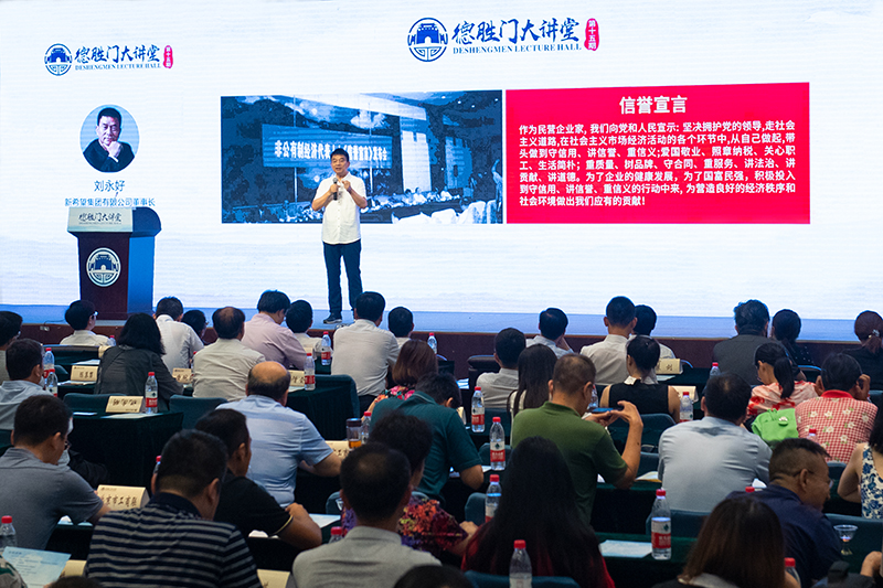 7月27日,由全国工商联主办的第15期德胜门大讲堂活动在京举办。本期大讲堂以“信誉天下——民企诚信在行动”为主题,全国工商联原副主席、新希望集团有限公司董事长刘永好,全联农业产业商会会长、上海均瑶(集团)有限公司总裁王均豪,滴滴出行创始人兼CEO程维等知名民营企业家和专家分享诚信故事,并就加强民营企业诚信建设等交流研讨。全国工商联党组成员、副主席李兆前,全国工商联党组成员邱小平,全国工商联党组成员、副主席鲁勇参加活动,中国民间商会副会长、奥盛集团有限公司董事长汤亮主持活动。中国金融博物馆理事长王巍主持高峰对话。